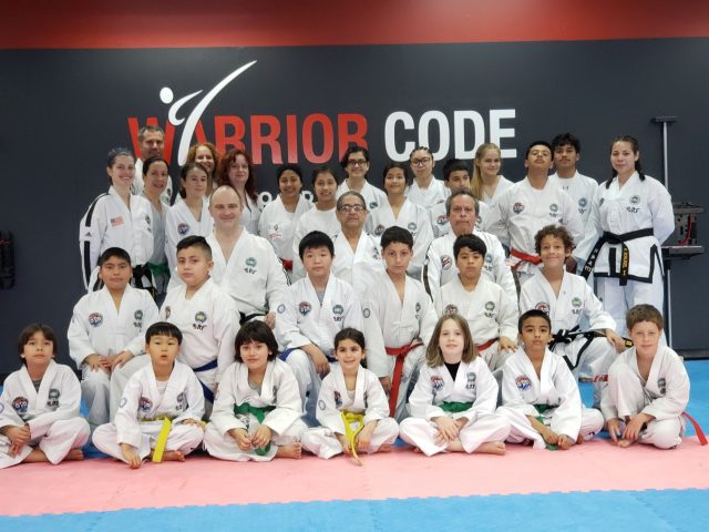On Sunday, January 12, Grand Master Suarez was Master LeGrow’s guest examiner for Warrior Code’s Black Belt Testing. 7 of Warrior Code’s students attempted to achieve their 1st degree black belt. From the 7, 5 of them are from the original group who started when Warrior Code opened 4 years ago!