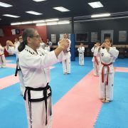 The afternoon covered all the color belt patterns and their movement applications. As many people are aware, Grand Master Suarez is also on the Umpire Committee of the ITF. He can clearly explain the difference between a correct execution of a movement and what would be a point deduction in competition. By the end of the day, all the students were exhausted. Some sent in a testimonial the following day – also saying they could barely walk, but they loved every minute of it!